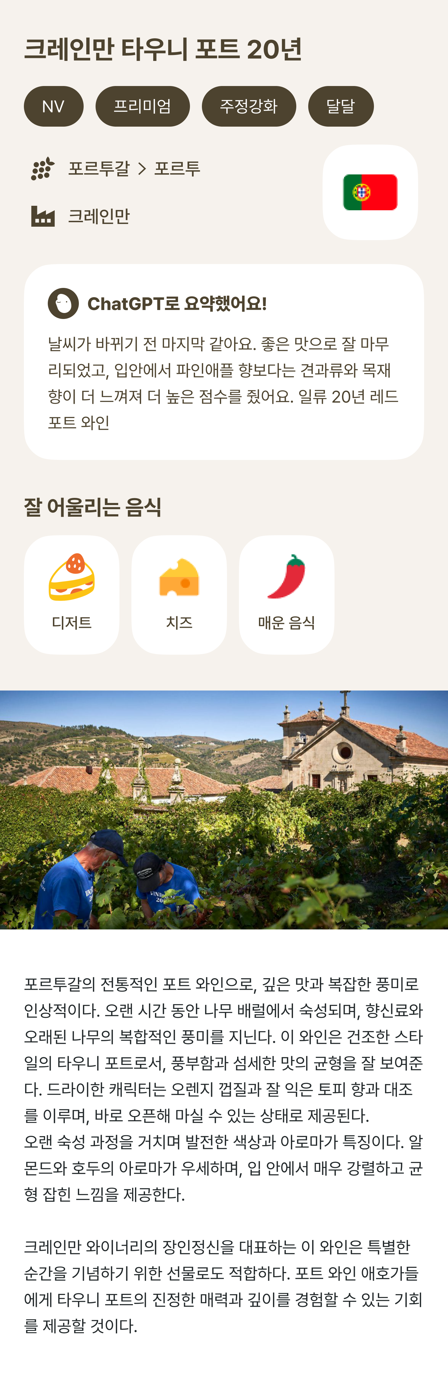 이 와인은 목 넘김이 매우 무겁고 당도가 매우 높아요.