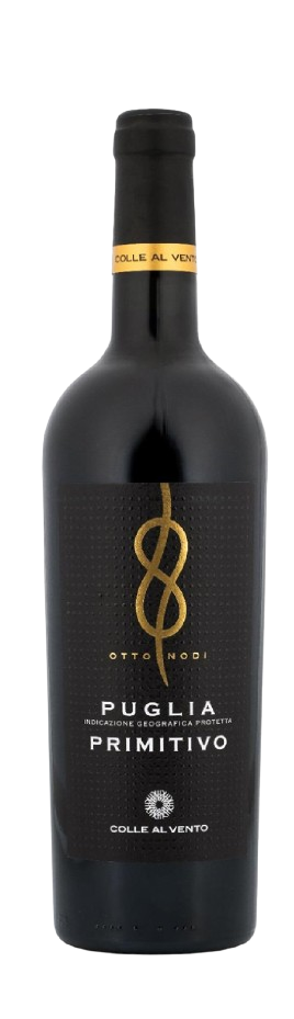 Colle Al Vento는 “바람이 부는 언덕"을 의미하고 있으며 Otto Nodi는 “8개의 매듭"을 뜻하며 라벨 전면의 디자인은 선원들이 배에서 사용하는 매듭을 의미하고 있습니다. 이는 바다로 둘러싸인 풀리아 지역을 떠올리게 합니다.